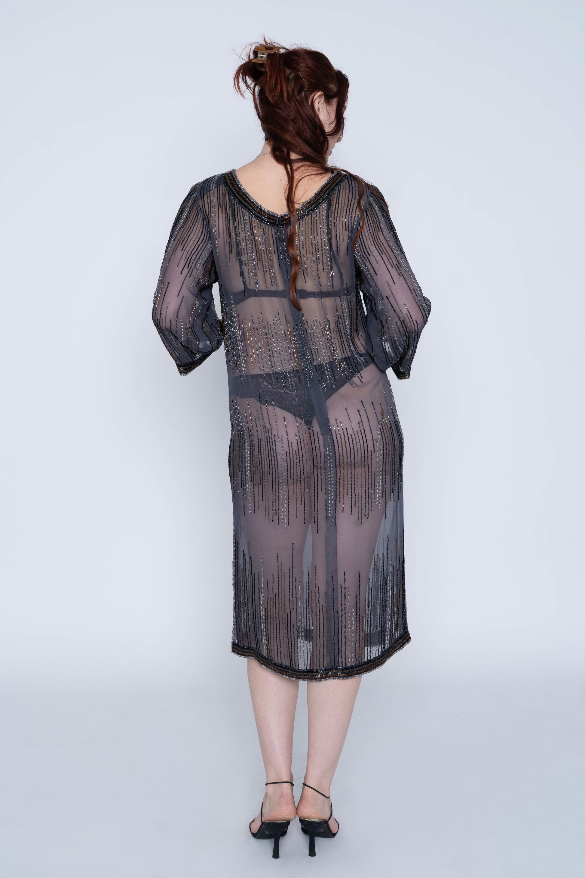 Grey Beaded Sheer Shift Dress Size Medium/Large