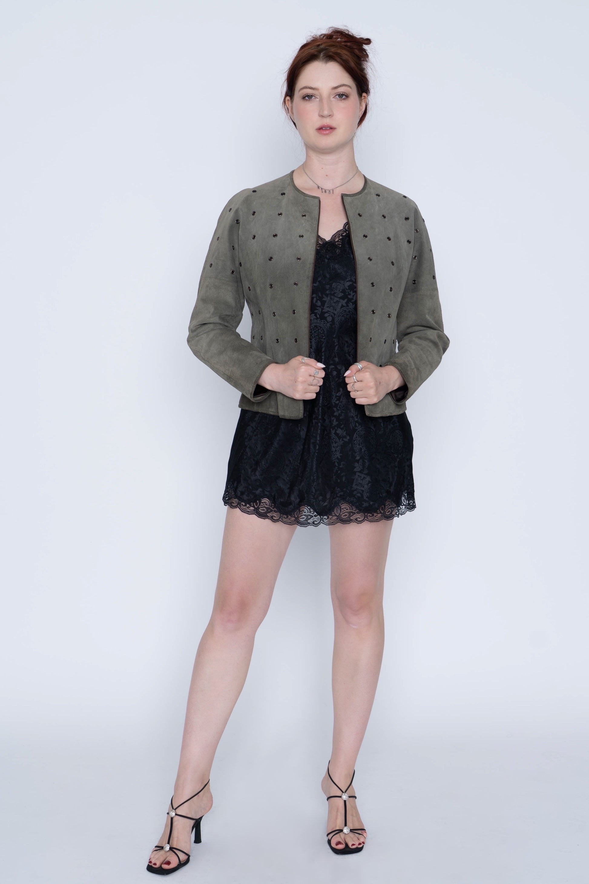 Sage Green Grommet Suede Jacket